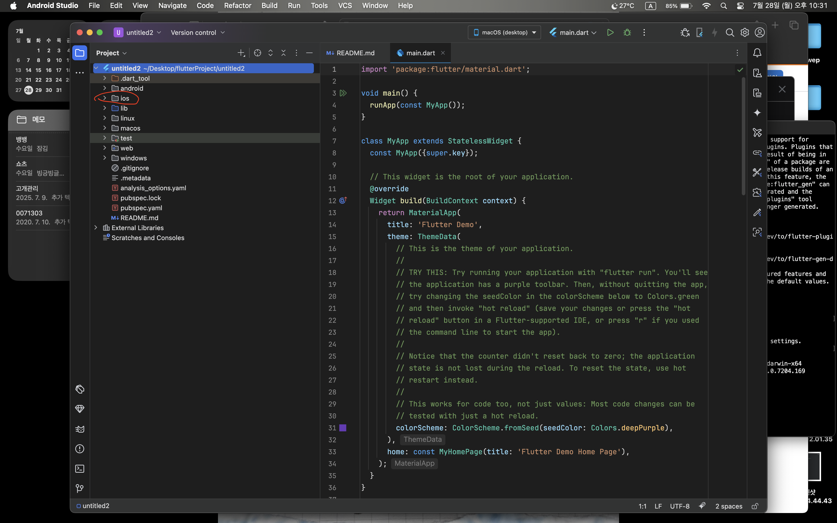 나의 경우 프로젝트를 만들면 ios 플랫폼의 폴더가 생성이 안되었다.